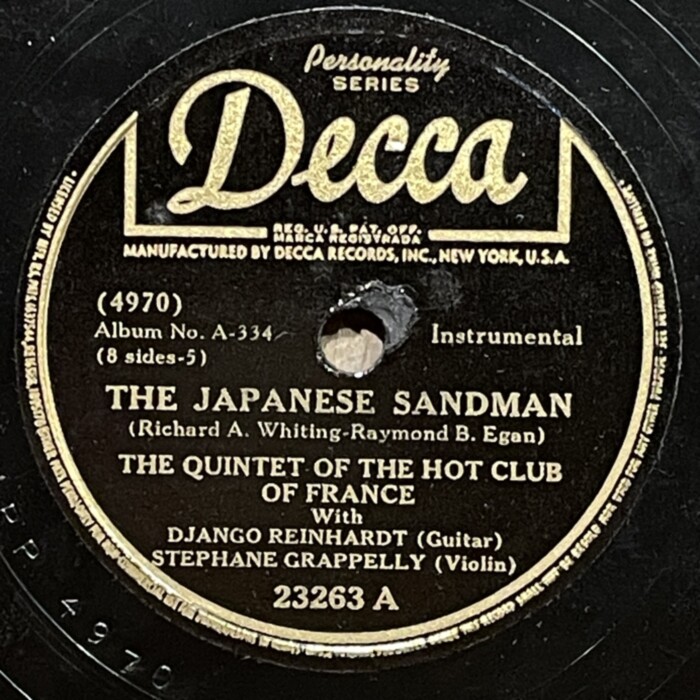 Послевоенное переиздание на Декке, cудя по шуму многие американские матрицы нарезались не с оригиналов. При этом, несмотря на дополнительные потери при перезаписи, музыкальность 78 пластинок вне конкуренции.