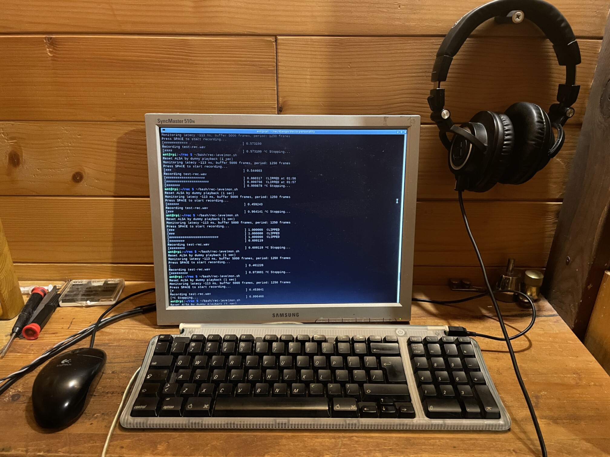 Вишенкой на торте оказалась клавиатура от Mac G3, от которой поначалу пришлось отказаться — у нее отсутствовала клавиша delete и не везде работал control. В очередной раз был удивлен, насколько звук зависит от всего, что окружает сам компьютер — выбирая лучший по звучанию USB разъем в уже основательно доработанном Raspberri, ради эксперимента воткнул эту клавиатуру взамен современной дорогой механической клавиатуры USB-C и уже не смог вернуться обратно. С клавишами от G3 разобрался в итоге — благо под Linux их можно переопределять и корректировать их поведение без особых проблем, если не считать поиска решения, пригодного для слабенького процессора B+.